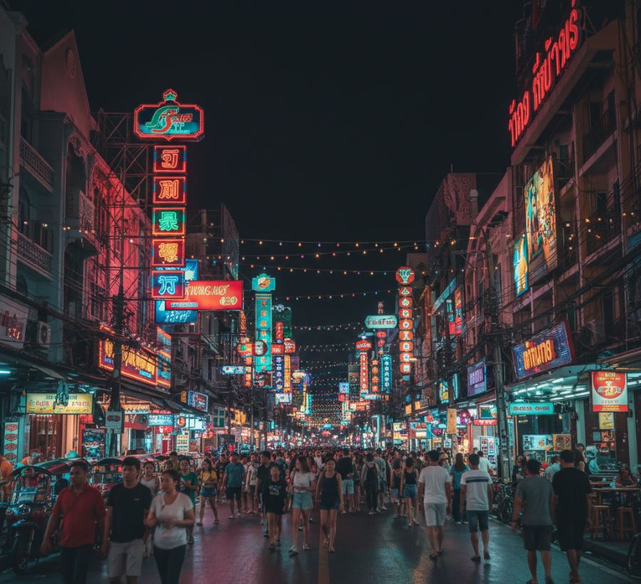 ถนนคนเดินและสีสันยามค่ำคืนที่ไม่เคยหลับใหล
