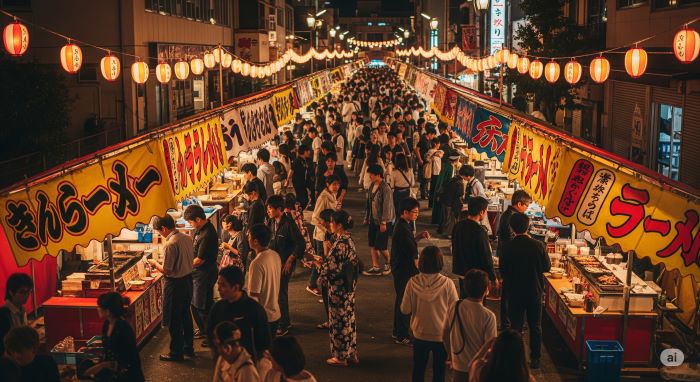 “ยาตาอิ” คือแผงขายอาหารขนาดเล็กริมทางที่เป็นเอกลักษณ์ของฟุกุโอกะ บรรยากาศเป็นกันเอง เปิดช่วงเย็นถึงดึก มีเมนูเด็ดหลากหลาย ทั้งราเมนทงคตสึ ยากิโทริ และไข่เจียวไข่ปลามันตาอิโกะ