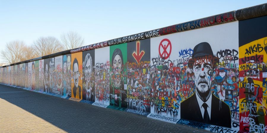 กำแพงเบอร์ลินฝั่ง East Side Gallery คือส่วนที่หลงเหลือยาวที่สุดของกำแพงที่เคยแบ่งเบอร์ลินตะวันออก-ตะวันตก ปัจจุบันกลายเป็นแกลเลอรีกลางแจ้งที่เต็มไปด้วยภาพกราฟฟิตี้และศิลปะเชิงเสรีภาพจากศิลปินนานาชาติ สะท้อนพลังของอิสรภาพและความหวังได้อย่างทรงพลัง