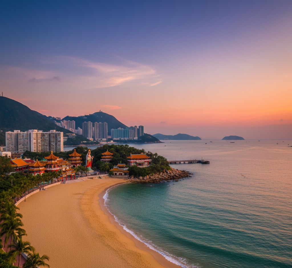 ชายหาดรูปจันทร์เสี้ยว ไหว้เจ้าแม่กวนอิมริมทะเล