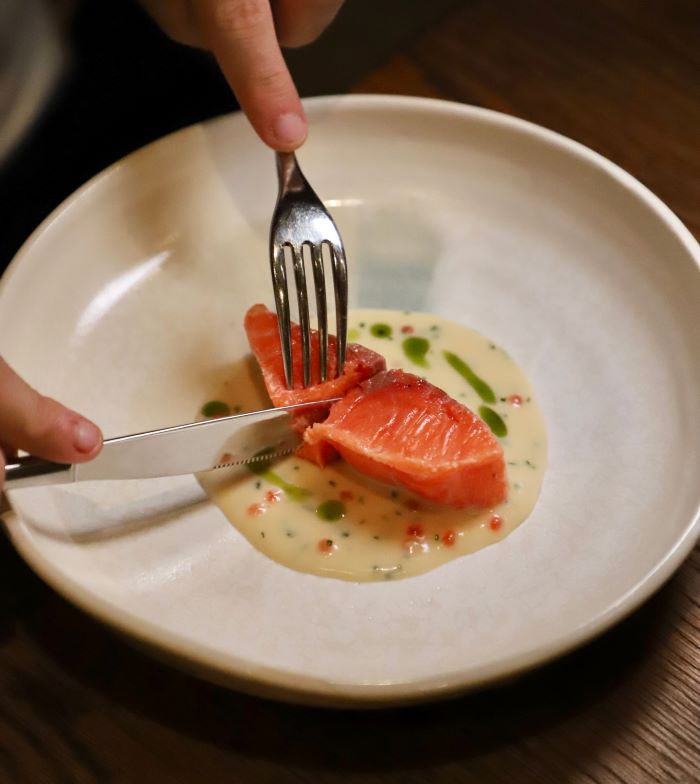ร้านบรรยากาศอบอุ่นที่ผสมผสานเทคนิคฝรั่งเศสกับวัตถุดิบเมดิเตอร์เรเนียน ทุกรายละเอียดสะท้อนความตั้งใจของเชฟที่มาจากสาย fine-dining