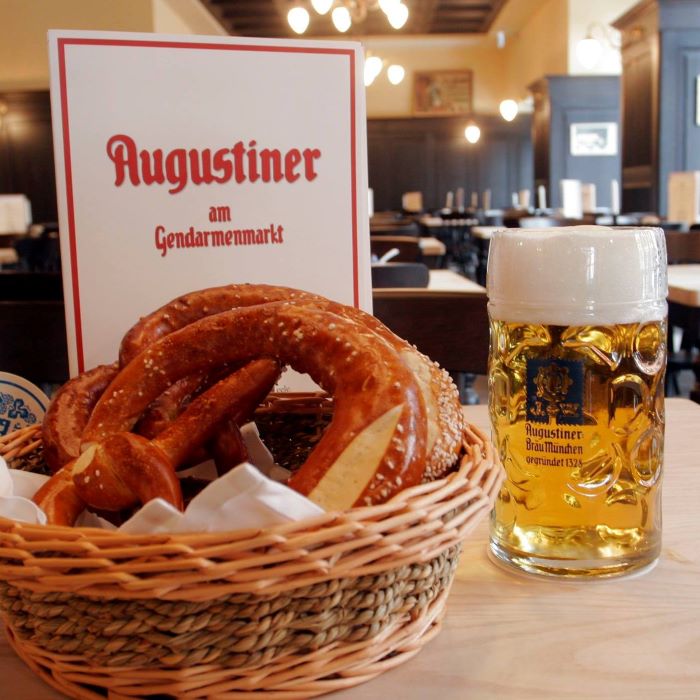ร้านอาหารสไตล์บาวาเรียนคลาสสิก เสิร์ฟอาหารเยอรมันต้นตำรับและเบียร์สดจากแบรนด์ Augustiner ท่ามกลางบรรยากาศอบอุ่นใจกลางจัตุรัส Gendarmenmarkt