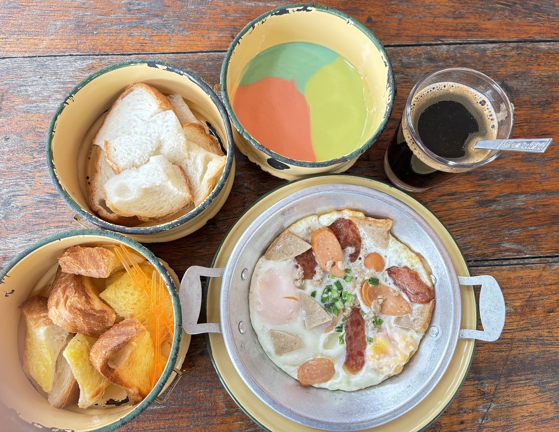 อาหารเช้าสไตล์สิงคโปร์ ขนมปังคายาโทสต์และกาแฟโบราณ